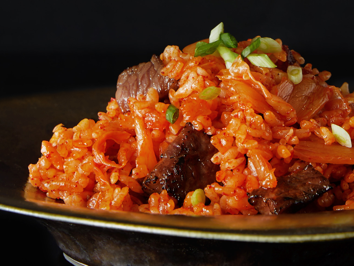 Mongtan's special fried rice enhanced with savory beef fat, aromatic chili oil, and sesame oil. A delightful mix of Korean onions, kimchi, pork, and sweet corn